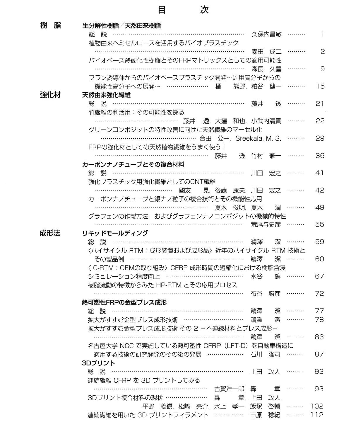 直近10年間で協会誌「強化プラスチックス」に掲載された特集の内、環境関連中心の内容から11のカテゴリーを選択し、その中から記事を3件選定し各カテゴリーの冒頭に総説を新たに掲載したものです。それらにFRP統計資料(用途別出荷量と成形法別出荷量)と各カテゴリーの用途事例(カラー)を加えたものです。A4判合計208頁の製本版とデジタル版となっています。