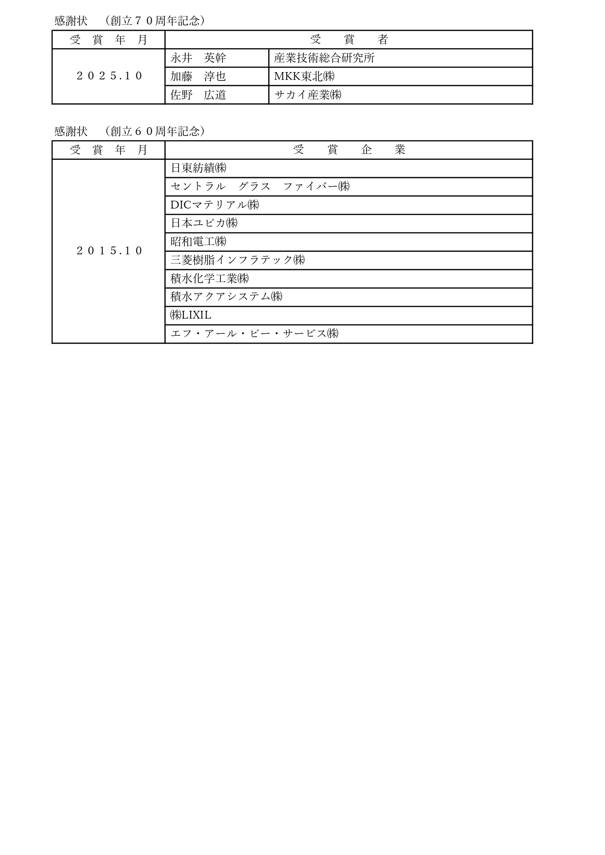 FRP70年の歩み ~直近10年間の進展と今後および用途事例集~(製本版、デジタル版) 協会創立70周年記念出版誌として、記念出版委員会で約2年間準備してきました『FRP70年の歩み ~直近10年間の進展と今後および用途事例集~』をFRP CON-EX 2025の初日10月29日(水)に発行致します。 直近10年間で協会誌「強化プラスチックス」に掲載された特集の内、環境関連中心の内容か...